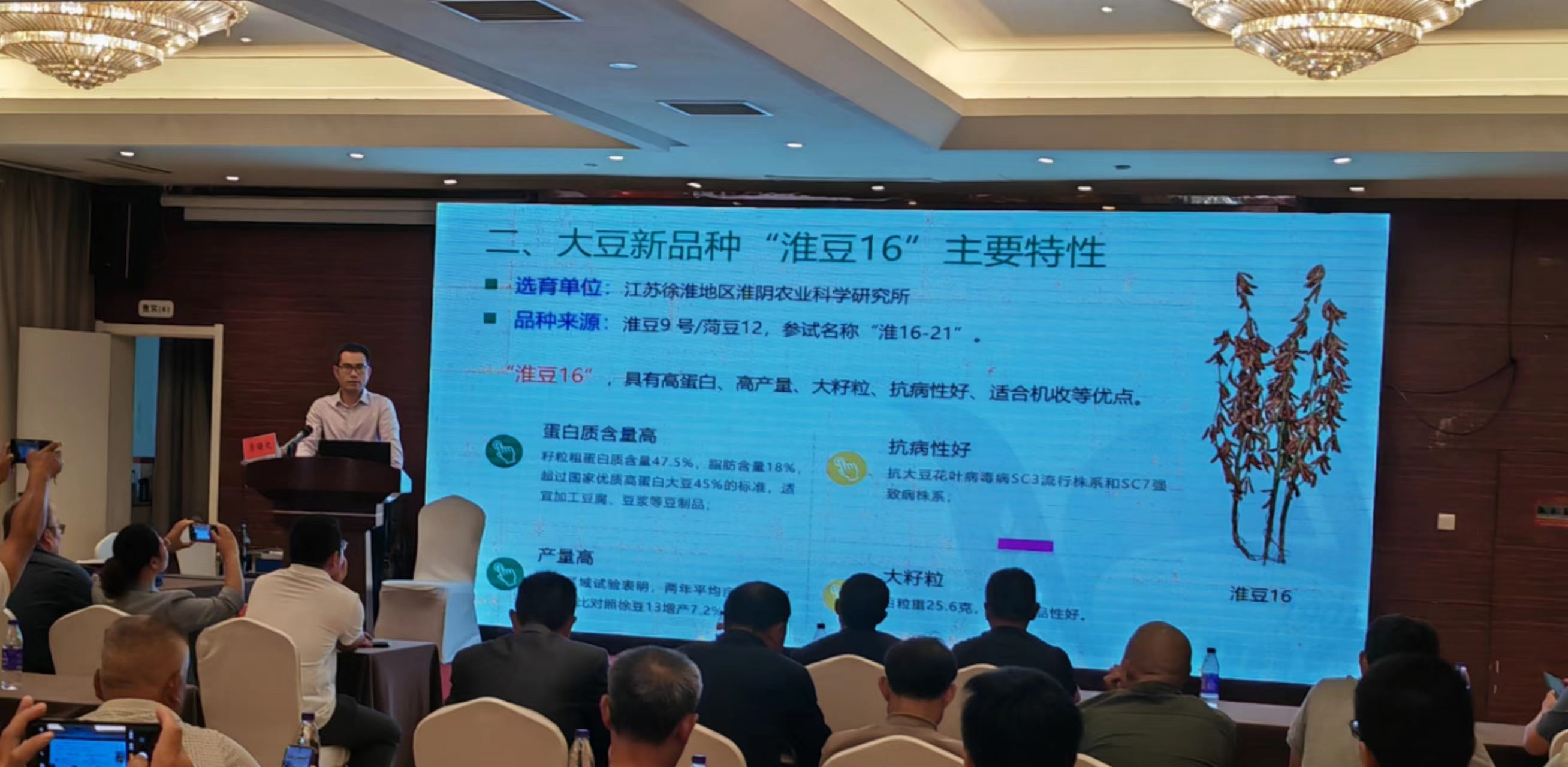 9月13日上午,由我院大豆资源创新与新品种选育团队联合江苏省农业科学院经济作物研究所大豆育种团队,在淮安市京仕国际大酒店成功举办“大豆、玉米带状复合种植关键技术研究与集成示范”培训会议。江苏省农业科学院经济作物研究所邵明灿副书记、省农技推广总站俞春涛科长、我院副院长孙苏阳、我院大豆团队负责人徐海风、沿江地区农科所和灌云大豆原种场相关人员以及淮阴区、盱眙县、涟水县大豆玉米带状种植大户、作栽站技术人员等共60余人参加会议。省农科院张红梅博士主持会议。