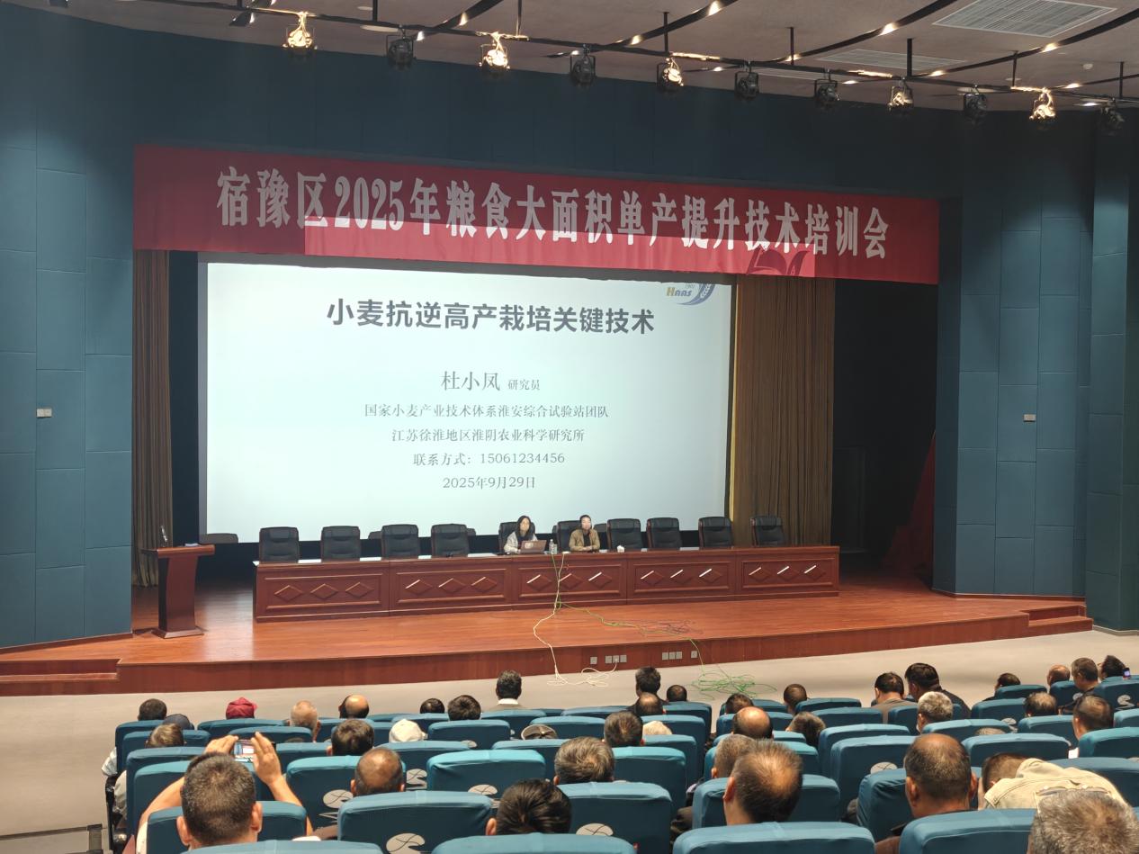 秋收秋种在即,为提高秋播小麦高产关键技术到位率,9月29日,小麦单产提升整建制推进县宿迁市宿豫区组织召开“宿豫区2025年粮食大面积单产提升技术培训会”。本次会议聚焦秋粮收获与秋播小麦高产栽培关键技术,通过“理论培训+现场教学”相结合的方式,重点指导新型经营主体做好秋播科学规划与关键技术落地,促进小麦单产水平再上新台阶。宿豫区各镇街农技人员、种粮大户、家庭农场、农民专业合作社、农业龙头企业等新型农业经营主体200余人参加了此次会议。