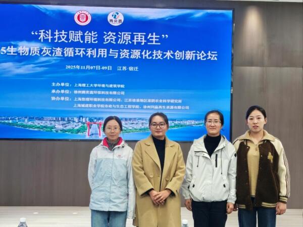 11月7日至9日,以“科技赋能,资源再生”为主题的2025生物质灰渣循环利用与资源化技术创新论坛在江苏省宿迁市成功举办,本次论坛由上海理工大学环境与建筑学院主办、淮安市农业科学研究院等单位协办,汇聚行业专家、高校学者及相关企业代表,共同聚焦生物质灰渣资源化领域的技术突破与产业落地,我院农环价值链创新团队科技人员谢昶琰、张苗、李青、董青君参会,深度参与行业互动交流与研讨。