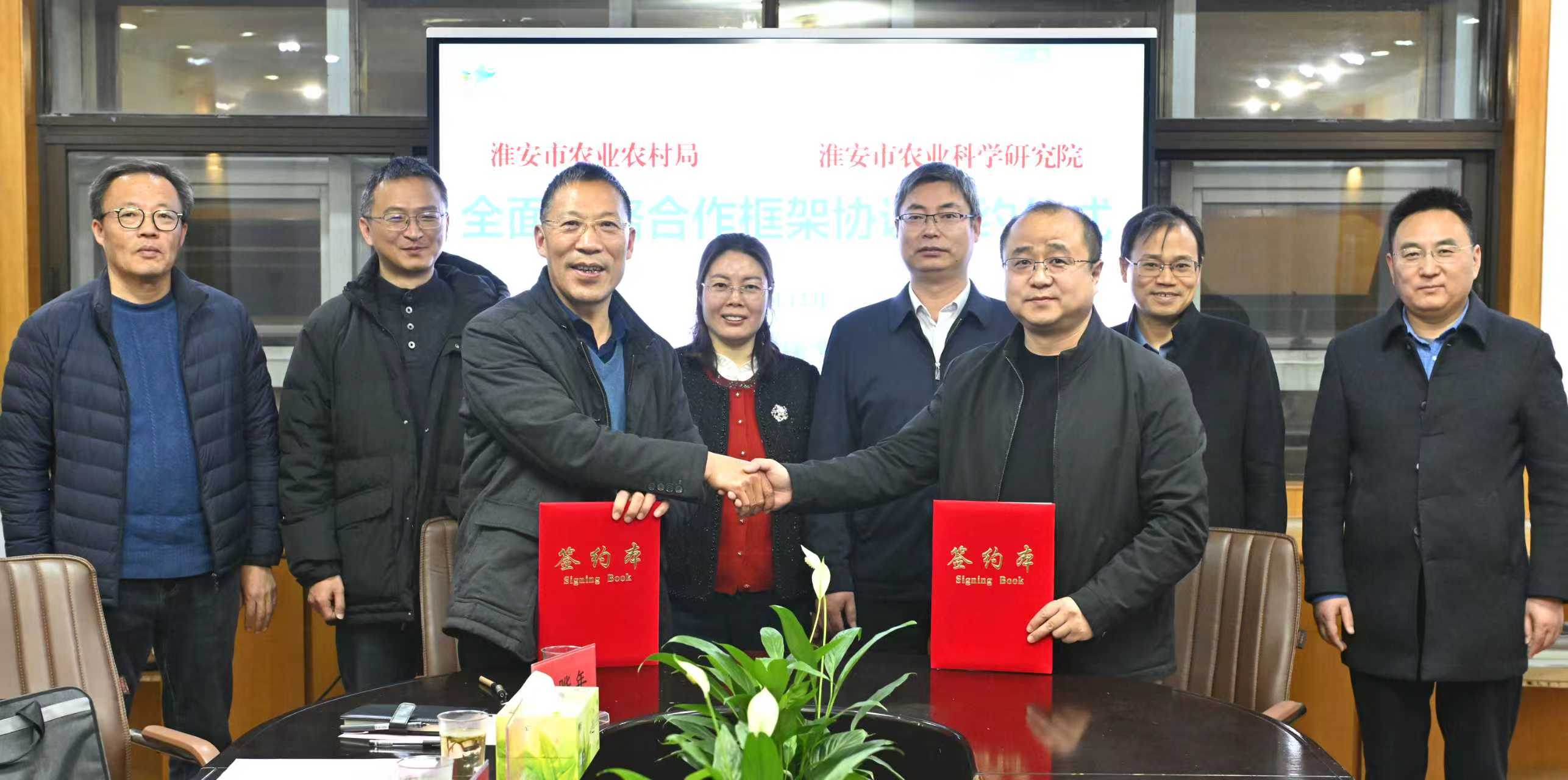 12月29日,我院与淮安市农业农村局举行全面战略合作框架协议签约仪式。市委副秘书长、市农业农村局局长罗高阳,我院党委书记、院长汪国莲,市农业农村局副局长胡杰,我院领导班子全体成员出席仪式。院党委副书记章安康与市农业农村局副局长胡杰代表双方签署协议。