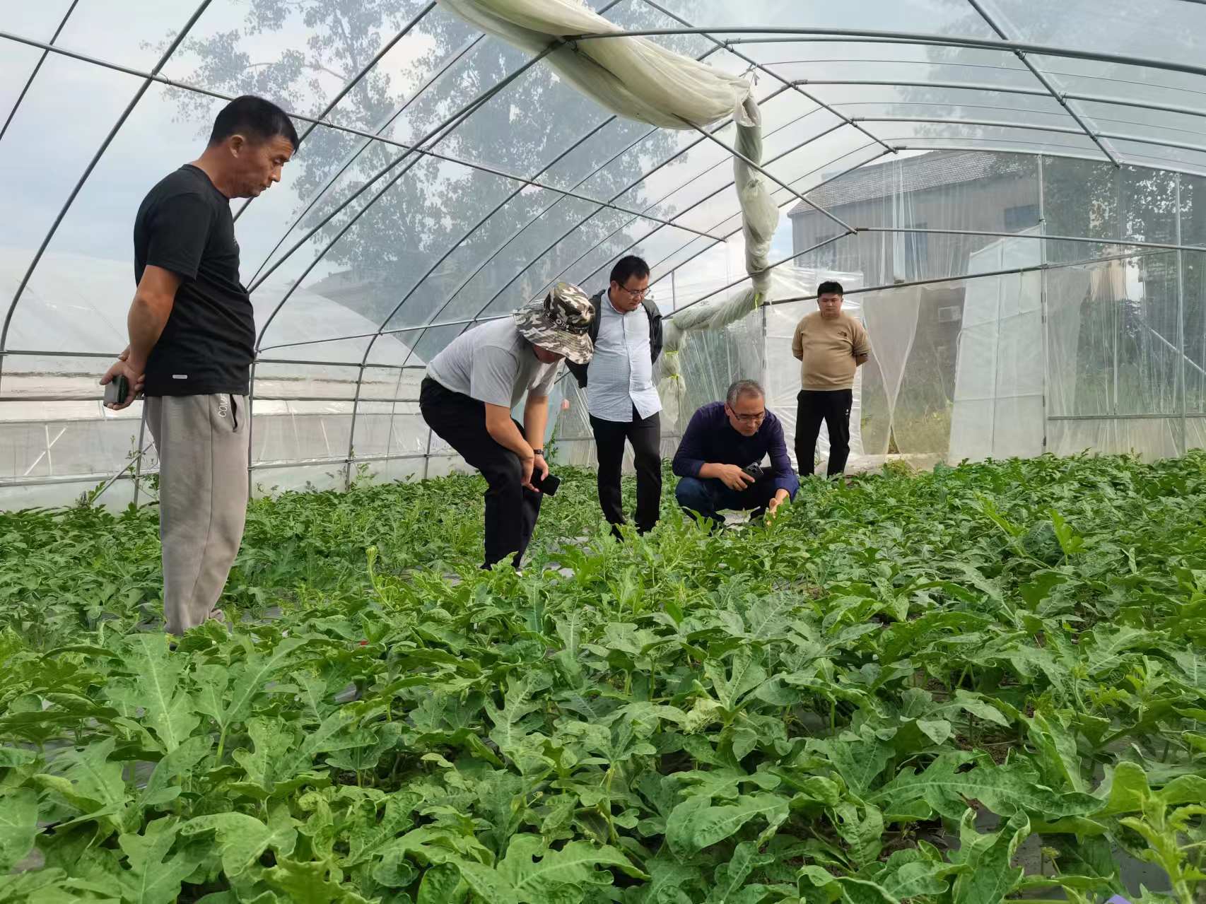 陶桥村位于博里镇中部,是十四五期间市定帮促村,总面积约4平方公里,全村有607户2380人,耕地面积2543.5亩。近年来,在我院持续支持下,陶桥村抢抓国家实施乡村振兴机遇,积极推进当地农业产业转型升级,由传统的种植业向特色种植业转变,加大科技含量,提升特色农产品的市场竞争力,带领村两委、村低收入户、闲置劳动力共同致富,为村集体创收和远景发展奠定了良好基础。今年上半年,从淮安市农科院引入小果型西瓜种子繁育技术,在今年西瓜市场行情极差的情况下,实现了逆袭,每亩西瓜制种收益达16000元,提升了村集体收入和信心。下半年,该村进一步扩大了繁种的规模,此时正处于田间管理的关键时期,我院科技人员通过现场查看,针对出现的生长不一致、病虫害防治、水肥管理等问题,提供了解决方案,为该村的产业发展提供了有力的技术支撑。