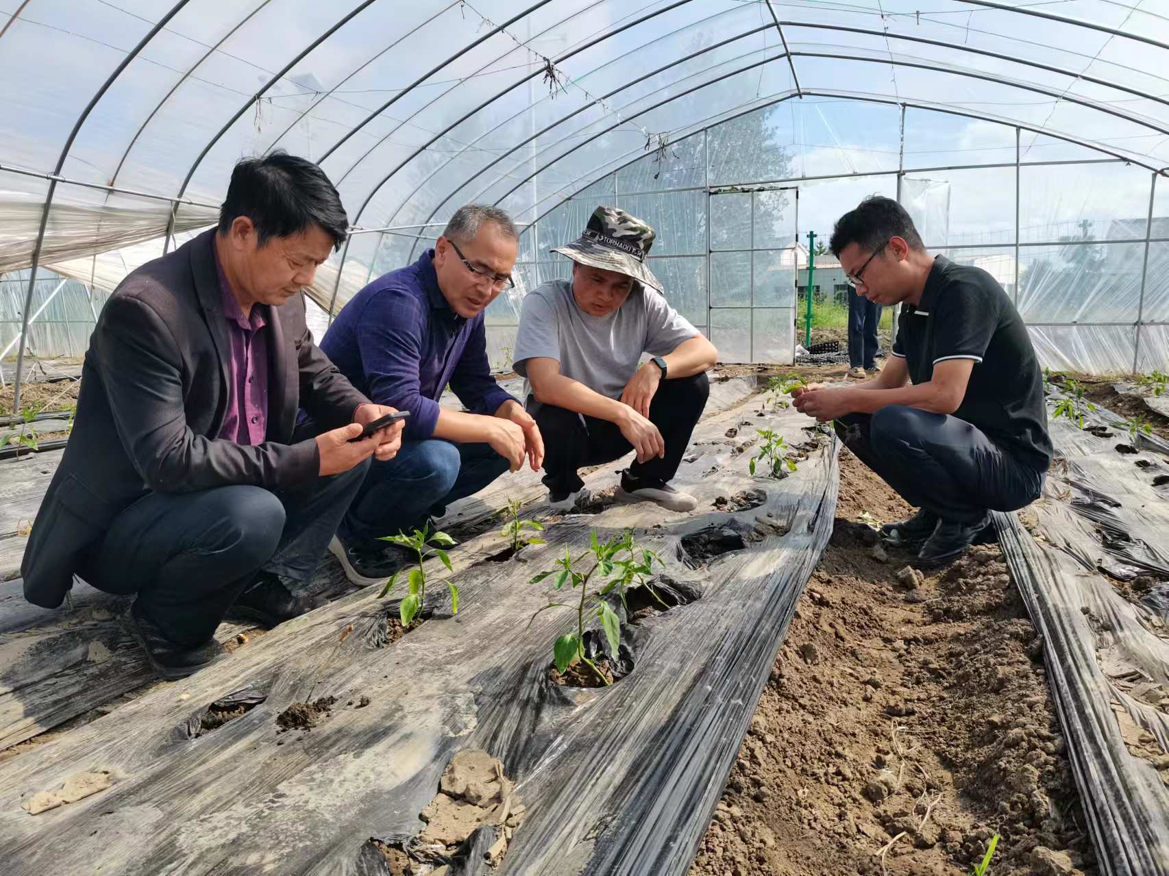 小岗村位于山阳街道东南角,总面积2.32平方公里,常住人口410户1830人。近年来,小岗村坚持把发展壮大村集体经济作为抓党建促乡村振兴的基础和关键,为推动集体经济扩量提质,该村因地制宜发展特色产业,实施省级现代农业发展大棚种植项目,大力发展特色果蔬种植。我院为该村引入了“春季西瓜+秋季辣椒”的种植模式,推动了该村高效农业的发展。近期,该村的秋季辣椒出现了死苗的问题,我院科技人员经现场察看,判断主要还是由于缓苗期间持续高温天气较长导致根系生长受到抑制,植株失水萎蔫,建议以后加大通风并覆盖遮阳网,尽可能的降低棚内温度,减少水分散失,促进缓苗。