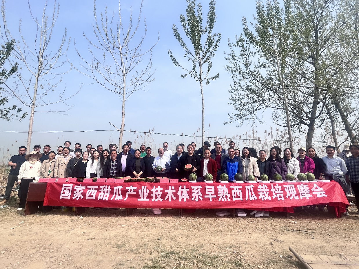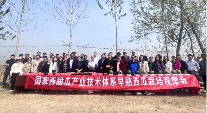 4月8日上午,睢宁县邱集镇西瓜种植基地,春意盎然,瓜果飘香。国家西甜瓜产业技术体系淮安综合试验站在此地举办了早熟西瓜栽培观摩会,国家西甜瓜产业体系首席科学家许勇研究员、国家体系有关专家、当地农技人员及种植大户等60余人参会。在淮安试验站站长孙玉东研究员的引导下,与会代表参观了田间种植的西瓜品种,并品鉴了大棚里种植的西瓜品种,了解西瓜品种的田间长势及品质。