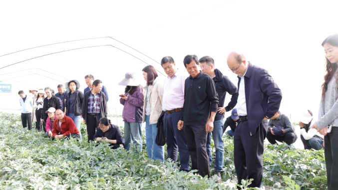 4月8下午,专家们来到同为徐淮生态区的沭阳县潼阳镇,参观了小果型西瓜种植大棚、田头市场,品鉴了苏梦6号、小兰等西瓜品种,与当地瓜农、经纪人、农技人员进行交流,了解当地种植模式、销售模式、面向市场等。