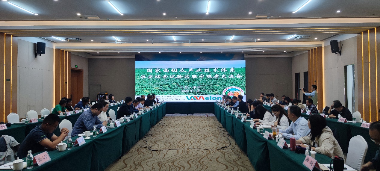 邱集镇西瓜基地观摩结束后,大家来到会议室开会交流,睢宁县领导及关部门介绍了县情和产业情况,淮安市农科院孙苏阳副院长代表依托单位致辞,许勇首席作了“西瓜产业高质量发展的创新方向”的学术报告,体系专家、种植大户代表进行了交流发言,大家纷纷发表了意见和建议。通过实地观摩以及大家的交流发言获悉,睢宁县为我省徐淮生态区,西瓜种植面积超过10万亩,年产量超过37万吨,产值16亿元,早春茬口通过7层农膜覆盖西瓜最早可以在2月底3月初上市,产业极具特色。同时,也存在品种单一、品牌影响力不大等问题。