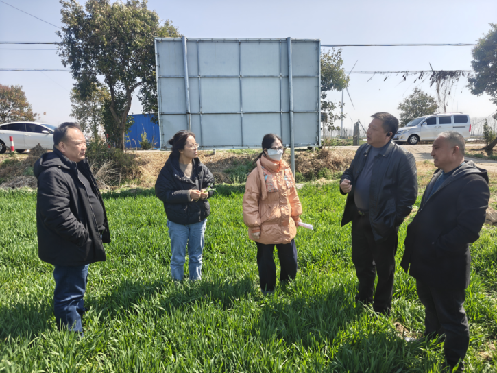 为贯彻落实中央一号文件精神,强化科技支撑粮食安全,助力小麦单产提升行动,3月17日,我院作调中心杜小凤研究员、杨文飞研究员带领中心科技人员宋佳敏、何佳伟赴金湖县开展春季田间管理技术指导调研工作,金湖县农业技术推广中心主任刘仁梅、副主任闵季春以及当地种植户代表等陪同调研。本次活动旨在为即将召开的小麦春季田间管理技术培训会进行实地调研和前期准备,确保培训内容精准对接生产需求。