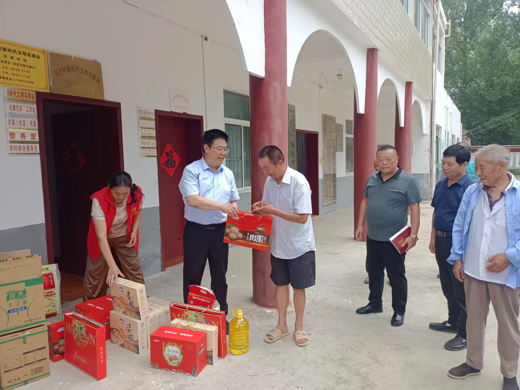 月到中秋分外明,人到佳节别样亲。为推动我院“我为群众办实事”实践活动落到实处,9月14日,在中秋佳节来临之际,科技服务中心党支部和机关第二党支部党员在院党委书记、院长彭杰带领下赶赴淮阴区渔沟镇包圩村开展“情满中秋 爱在乡村”主题党日活动,为该村困难群众、老党员、退役军人以及村老干部送去月饼、米、食用油等物品及节日的问候。彭杰书记与大家亲切交谈,细致入微地询问大家的身体健康状况和生活情况,勉励他们要树立信心、克服困难。受慰问的人们非常感谢党和政府对他们的关心,纷纷表示要大力持村委会工作,积极参与村内各项活动,在各项工作中做好表率。