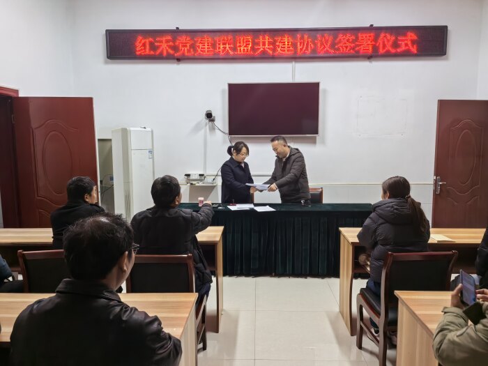 考察结束后,双方党员代表在横沟村党总支会议室围绕“党建引领乡村振兴”主题进行了深入交流,并签订红禾党建联盟共建协议。横沟村党总支书记王娟详细介绍了本村的资源禀赋、产业现状及发展需求,期望借助我院科技力量,在特色品种引进、种植技术精进、优新品牌打造等方面获得支持。我院种子中心党支部书记王宏宝表示,中心党支部将依托“红禾党建联盟”平台,紧密结合横沟村实际需求,精心定制整村科技推进方案,塑造“品种展示—技术示范—文化赋能”一体化科技新场景,构建“专家驻点研发+合作社规模种植+企业品牌运营”的产业新生态,打造“党建链”引领“技术链”、赋能“产业链”的乡村振兴示范样板。