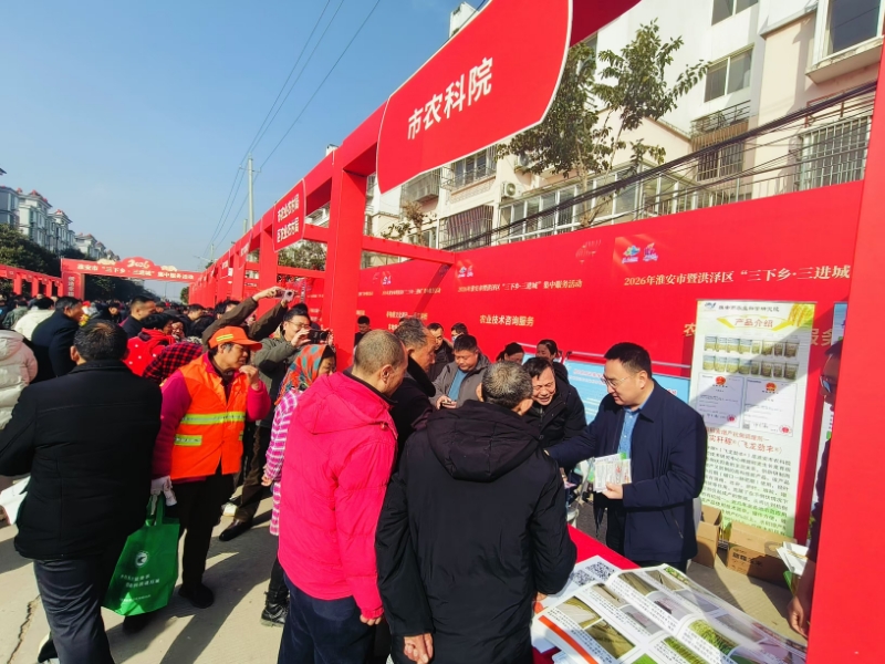 2月12日,由淮安市委宣传部主办的2026年淮安市“三下乡·三进城”集中服务活动在洪泽区岔河镇新时代文明实践所热闹启幕。我院积极响应、精准对接,由副院长李晔年带队,集结水稻、蔬菜等领域7名骨干专家,把良种、良法、良策送到乡镇,以科技力量为乡村振兴添动力。